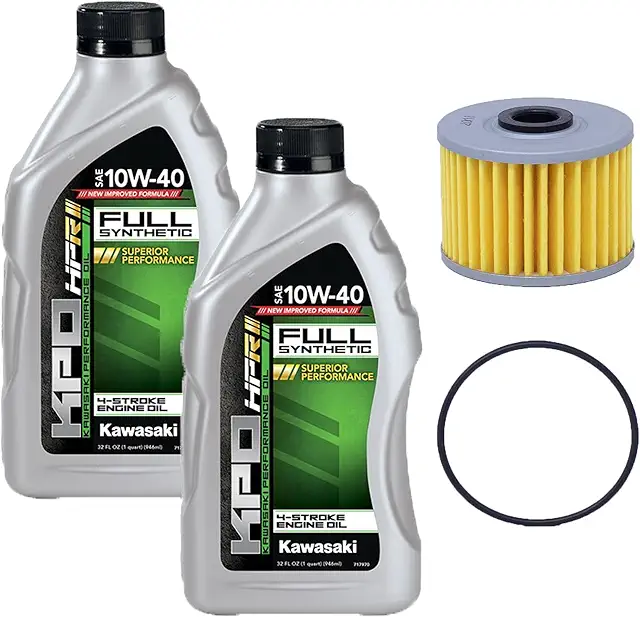 Edwards Full Synthetic Oil Change Kit For 1997-2024 Kawasaki KLX300 Motorcycle Contains; Two Full Synthetic KPD 10W-40 Oil Quarts, One 1053 Kawasaki Oil Filter and One O-Ring.