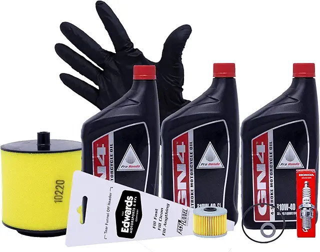 Includes: 3 quarts of GN4 10W-40, OEM oil filter, OEM air filter, crush washer/oring, funnel, and pair of nitrile gloves