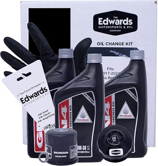Edwards Oil Change kit for your Honda Rebel 500. Includes oil, oil filter, crush washer, funnel, oil filter wrench and gloves.