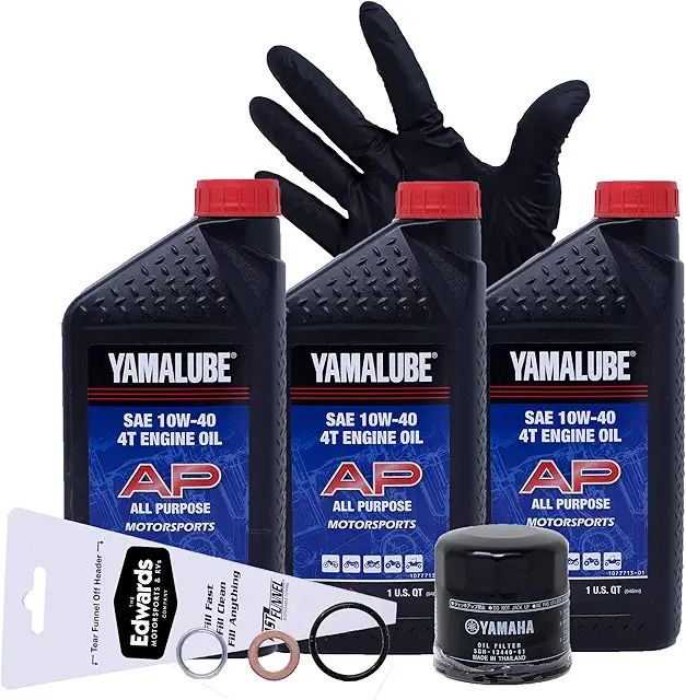 2018 – 2021 Yamaha 450 HUNTER 4WD SE EPS 4WD oil change kit. Yamalube SAE 10W-40 4T all purpose engine oil is performance blended mineral oil using high quality base stocks for use in motorcycles, ATVs, side x sides, and scooters. Genuine OEM Yamaha. Formulated with high-quality mineral base oils. Blended for all temperature environments for motorsports products. Advanced friction protection, lubrication and detergency for superior performance. JASO MA-certified. Factory-approved, purpose-built for motorsports products. Includes: three quarts of 10W-40 all purpose engine oil, OEM oil filter, o-rings, pair of nitrile gloves, and funnel