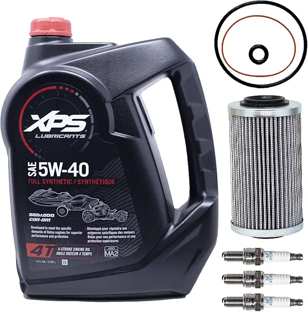 Keep your vehicle’s performance and protection with this full synthetic 5W-40 motor oil from XPS Lubricants. Developed to meet the specific demands of Rotax engines, this 4-stroke engine oil delivers superior lubrication and wear resistance. The 1 U.S. gallon bottle comes with a high-quality oil filter and three pre-gapped spark plugs, providing a complete maintenance kit for your powersports equipment. Ensure optimal operation and longevity with this premium lubricant and accessory package. Please refer to your owner’s manual for the recommended service intervals and specifications.