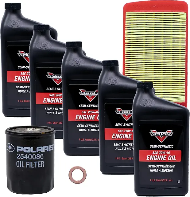 Edwards Oil Change Kit For Some 2008-2017 Victory motorcycles Contains; Five Victory 20W-40 Oil Quarts, One Polaris Oil Filter, One Victory 5813074 Air Filter, One Copper Washer Air Filter FITMENT: 2013-2015 Boardwalk 2015-2017 Gunner 2008-2017 Hammer 2012-2017 Highball 2008-2016 Jackpot 2013-2017 Judge 2009-2012 Kingpin 2008-2017 Vegas